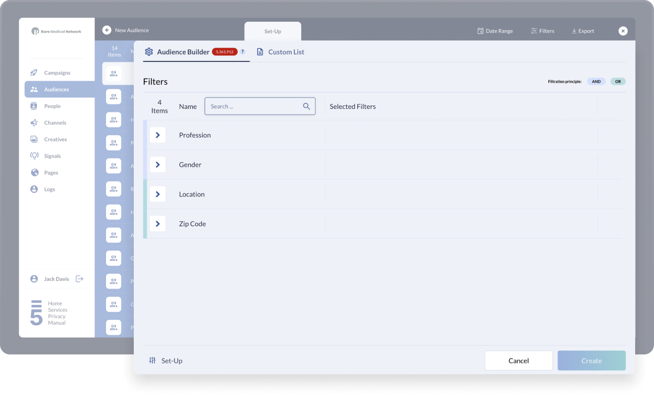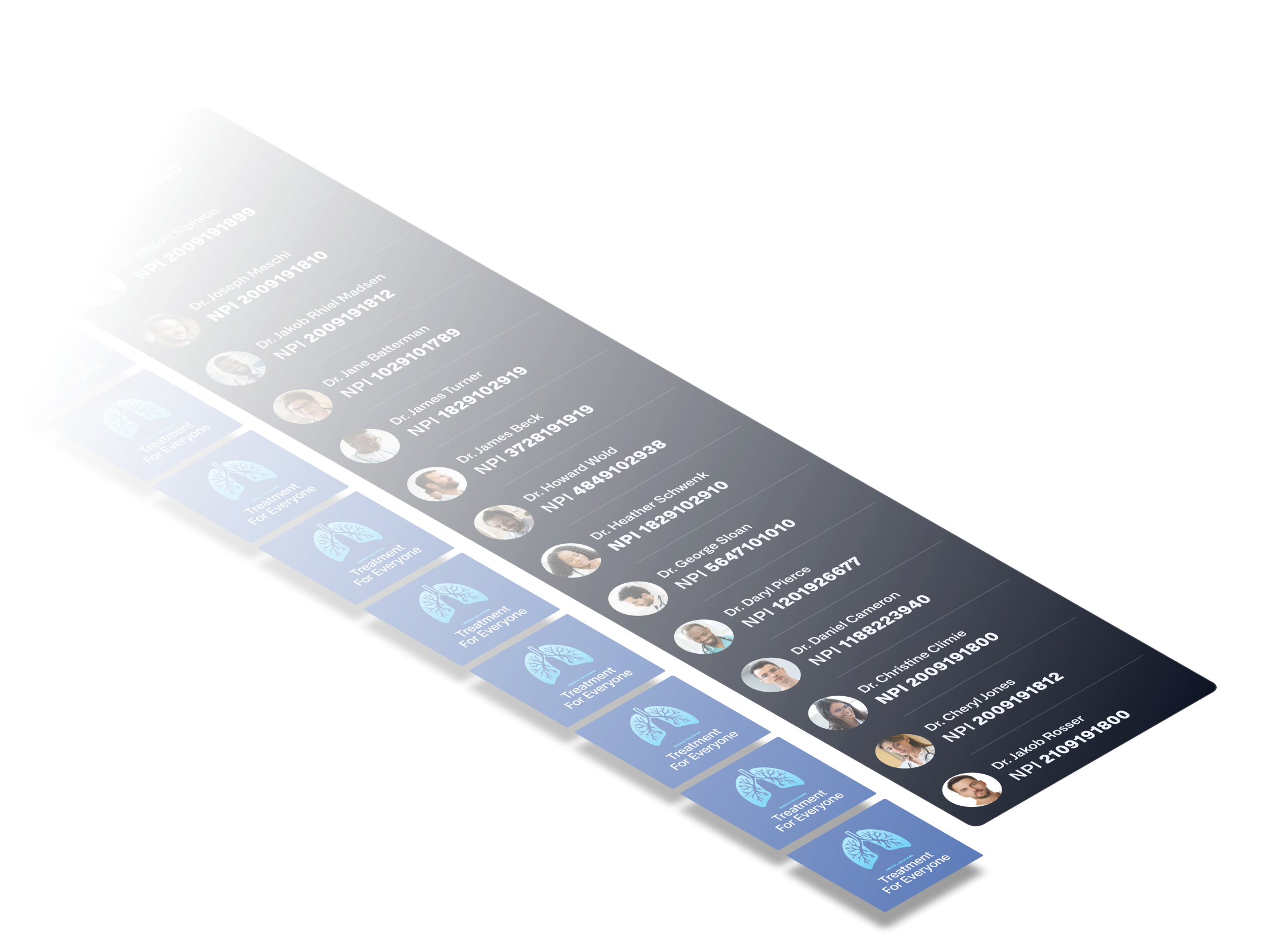 Upload your own NPI lists or build custom HCP Audiences by Specialty, Profession, Location and Demographic Data.